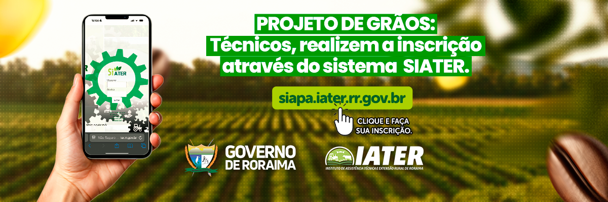 Últimas Notícias Convocação da nona lista do cadastro reserva do chamamento público 001/2025, coma apresentação da documentação no dia 21/08/2025. 26/08/2025 Ler mais 📢 CHAMADA PÚBLICA Nº 004/2025 19/08/2025 Ler mais Cadastro de reserva do edital de chamada pública 003/2025 11/08/2025 Ler mais Publicação Oficial – Lista Final de Inscritos com Documentação Aprovada 23/07/2025 Ler mais O IATER informa que o prazo para entrega da documentação dos inscritos no Edital de Chamada Pública 003/2025 foi prorrogado até o dia 18 de julho de 2025. 16/07/2025 Ler mais Entrega de documentação dos inscritos classificados nos dias 15/07/2025 á 16/07/2025 14/07/2025 Ler mais INFORMATIVOS DO CAMPO MAIS LEITE CACAU CAFÉ MILHO CAF PAA MANDIOCULTURA Notícias IATER 19/02/2025 Ler mais 27/12/2024 Ler mais 19/12/2024 Ler mais 16/12/2024 Ler mais 09/12/2024 Ler mais 09/12/2024 Ler mais OuvidoriaAcesse aqui Fale ConoscoClique aqui